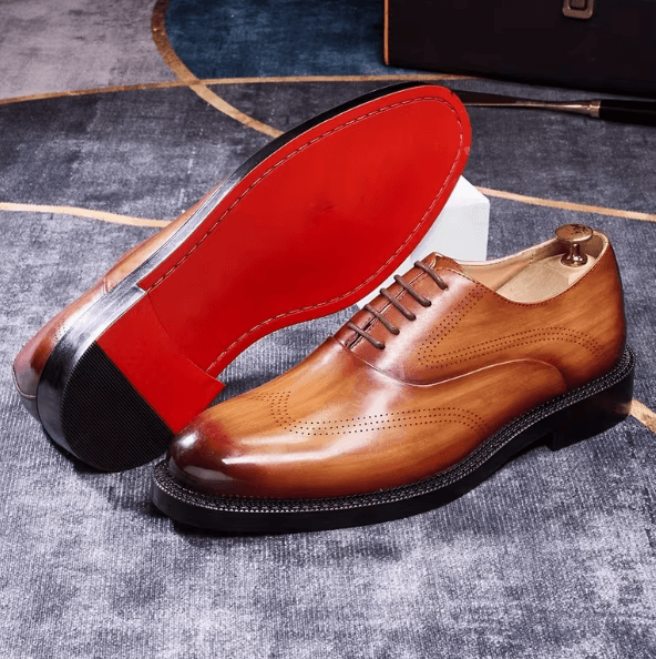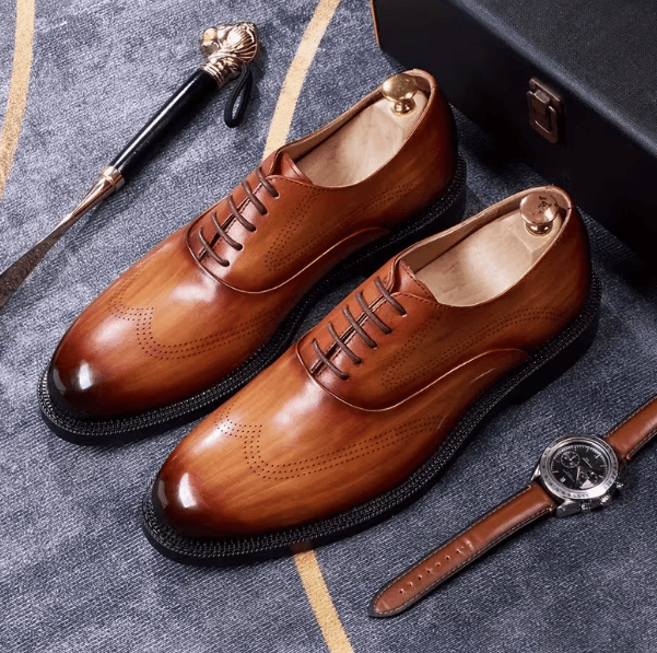 Genuine Leather Hand-Stitched Men's Oxford Shoes Brogue Detailing Hand Gradient Burnishing Three-Layer Welt Rubber Thick Outsole for Business Meetings & Weddings